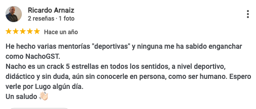 Si entrenas 2-3 veces por semana y no notas resultados en un mes, escríbeme a info@nachogst.com y te devolveré cada céntimo invertido. Rápido y sin preguntas.